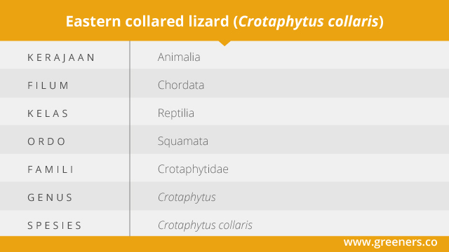 Eastern collared lizard atau kadal berkerah timur memiliki nama ilmiah Crotaphytus collaris dan berasal dari famili Crotaphytidae. Berkerabat dengan kadal berkerah hitam atau Black-collared lizards (Crotaphytus insularis).