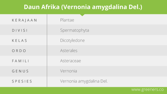 Vernonia amygdalina atau African bitter leaf atau dalam penamaan bahasa Indonesia disebut ‘daun afrika’ merupakan salah satu jenis tanaman tropis dari famili Asteraceae. Daun afrika memiliki daun berwarna hijau gelap dengan bau yang khas dan rasanya pahit. Daun afrika biasanya dikonsumsi sebagai sayuran setelah dihilangkan rasa pahitnya melalui perendaman atau perebusan untuk menghilangkan komponen astringent yang terkandung di dalamnya.
