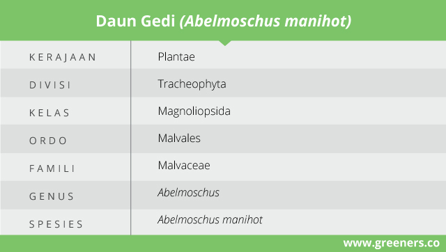 Daun gedi (Abelmoschus manihot) merupakan salah satu sayuran khas Sulawesi Utara yang berasal dari famili Malvaceae. Daun ini juga memiliki nama lain seperti Muskmallow, Sunset Huskmallow, atau Tropic Jewel Hibiscus.