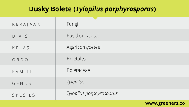 Elias Magnus Fries dan Fredrik Christopher Theodor Hök mendeskripsikan pertama kali pada tahun 1835, dengan nama ilmiah Boletus porphyrosporus. Lalu, 110 tahun kemudian, taksonomi jamur ini ahli mikologi Prancis Jean-Edouard Gilbert pindahkan ke dalam genus Tylopilus.