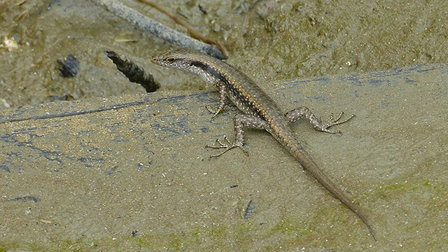 Di dalam ekosistem mangrove terdapat makhluk hidup lain yang hidup berdampingan, salah satunya adalah hewan dari kelas reptilia yaitu Emoia atrocostata atau familier disebut kadal.