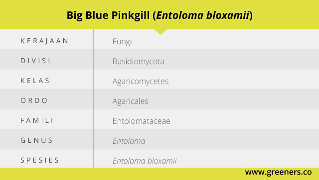 Ahli mikologi Inggris, Miles Joseph Berkeley dan Christopher Edmund Broome mendeskripsikan jamur itu secara ilmiah pada tahun 1854 dengan nama Agaricus bloxami. Nama itu untuk menghormati seorang pendeta dan naturalis Inggris bernama Andrew Bloxam (1801 – 1878). Namun, di tahun 1887, ahli mikologi Italia Pier Andrea Saccardo memperbaharui taksonomi jamur ini dan mengubah namanya menjadi Entoloma bloxamii.
