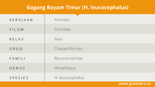 Spesies gagang bayam ahli gabungkan dalam famili Recurvirostridae dan genus Himantopus. Hewan ini merupakan salah satu pemakan invertebrata, yang hidup di sekitar ekosistem air.