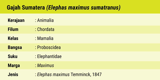Gajah sumatera terutama seluruh gajah Asia dan sub-spesiesnya, termasuk satwa terancam punah (critically endangered) dalam daftar merah spesies terancam punah yang dikeluarkan oleh Lembaga Konservasi Dunia –IUCN (International Union for the Conservation of Nature and Natural Resources).