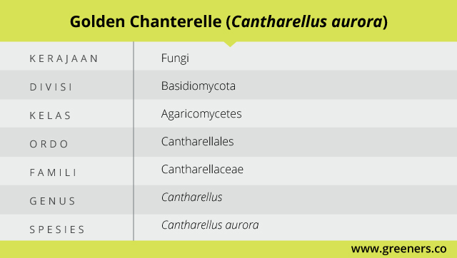 Jamur golden chanterelle dapat dimakan dan memiliki aroma seperti buah serta tekstur yang lembut. Sayangnya jamur ini berukuran kecil dan sudah sulit ditemukan di alam. Melansir dari berbagai sumber, C. aurora mengandung asam amino esensial seperti leusin, fenilalanin, tirosin, dan isoleusin.