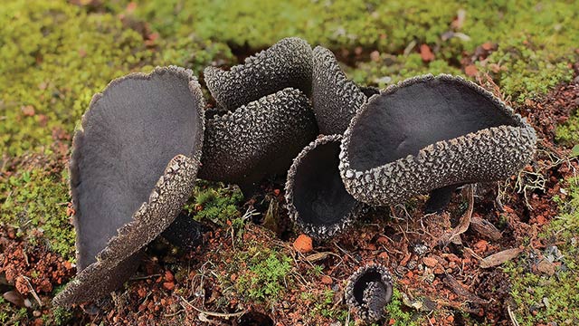 Bentuknya yang cekung menyerupai cawan menjadikan spesies Helvella corium memiliki ciri khas tersendiri. Distribusi jamur berwarna hitam ini cukup luas, tapi jamur berwarna hitam ini tak bisa dimakan. Helvella corium kerap tumbuh di tanah dekat pohon willow di hutan gugur atau hutan campuran.