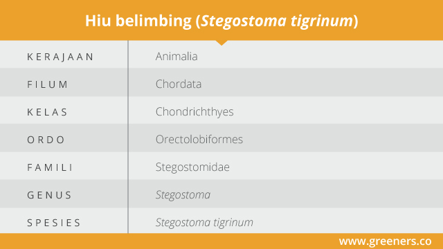 Hiu belimbing atau zebra shark memiliki nama ilmiah Stegostoma tigrinum dan berasal dari famili Stegostomidae. Disebut hiu belimbing, karena di Indonesia mereka dianggap terlihat seperti buah belimbing. Meskipun begitu, di sebagian daerah menyebutnya hiu tutul karena corak di tubuhnya yang seperti macan tutul.