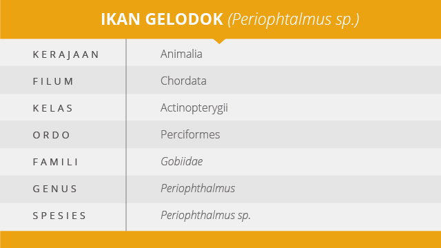 Hutan mangrove dan rawa bakau merupakan daerah yang sangat subur serta menyediakan tempat berlindung juga tempat mencari makan bagi kebanyakan makhluk hidup. Salah satunya adalah ikan gelodok. Ikan gelodok (Periophthalmus sp,) dikenal dengan berbagai macam penamaan lokal seperti tembakul, gabus laut, belodok, belodog atau blodog. Dalam penamaan bahasa Inggris ikan ini disebut ‘mudskipper’ karena kebiasaannya yang senang melompat-lompat ke daratan, terutama di daerah berlumpur di sekitar rawa-rawa bakau ketika air sedang surut.