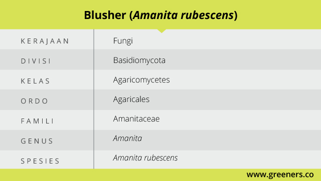 Jamur Amanita rubescens dikenal juga dengan sebutan the blusher. Hal ini karena tubuh jamurnya yang memerah ketika memar, terluka, ataupun ketika dipotong. Di samping itu, A. rubescens dianggap sebagai ikan buntal di dunia jamur. Dapat kita makan, tetapi kesalahan mengolahnya dapat mematikan.