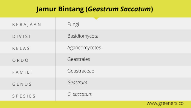 Secara klasifikasi, keluarga Geastraceae sebenarnya diisi oleh delapan genus jamur. Tiap-tiap kelompoknya mempunyai tampilan yang mirip, yakni memiliki tubuh buah bulat yang berfungsi sebagai tempat spora.