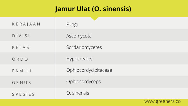 Secara taksonomi, O. sinensis ahli kenal juga dengan nama Cordyceps sinensis. Jamur ini tergabung dalam genus Cordyceps yang jamak pakar temukan di dataran tinggi Tibet selama musim panas.