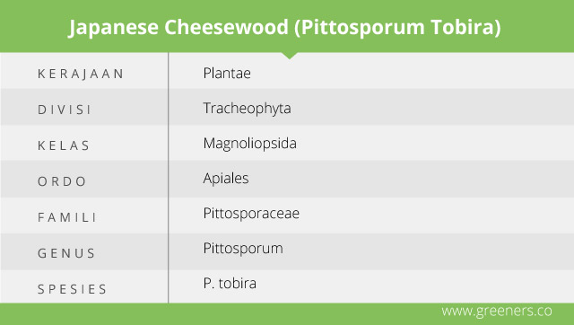 Japanese cheesewood mempunyai nama ilmiah Pittosporum tobira. Flora ini merupakan satu dari 300 spesies tumbuhan berbunga yang berasal dari genus Pittosporum dan keluarga Pittosporaceae.