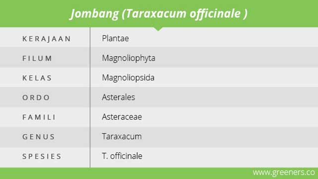 Tanaman jombang (Taraxacum officinale) merupakan tanaman semak berumpun, akar tunggang, berbatang semu atau tidak berbatang, dan berbunga kuning kecoklatan.