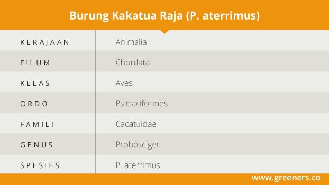 Kakatua raja memiliki nama ilmiah Probosciger aterrimus. Kelompoknya tergabung ke dalam famili Cacatuidae, serta menjadi satu-satunya spesies yang berasal dari genus Probosciger.
