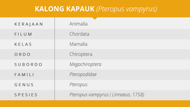 Spesies Pteropus vampyrus atau disebut dengan kalong kapauk, bukanlah satwa pemakan daging ataupun pengisap darah, melainkan kelalawar pemakan buah-buahan. Sesuai dengan penamaan subordo “Mega”, yang berarti kelalawar ini berukuran besar.