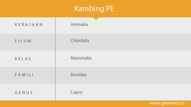 Ternak kambing di Indonesia secara umum dapat dikelompokkan menjadi dua rumpun besar yakni kambing kacang dan kambing peranakan etawa (PE), Menurut tipenya, kambing PE termasuk kambing dwiguna yaitu penghasil daging dan susu.
