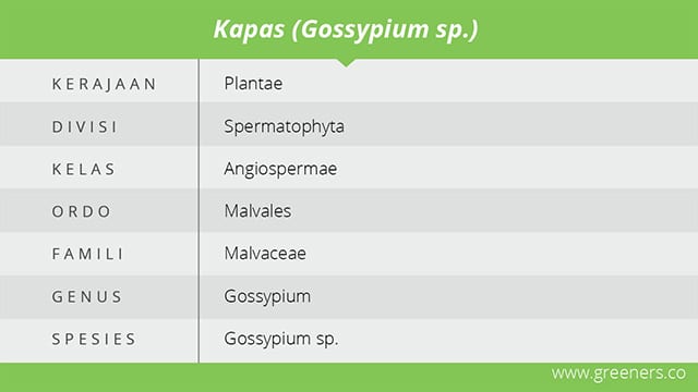 Tanaman kapas (Gossypium sp.) termasuk famili Malvaceae. Genus Gossypium mempunyai 39 spesies yang telah diketahui. Dari ke-39 spesies tersebut hanya empat spesies yang dibudidayakan, sisanya masih merupakan tanaman liar.
