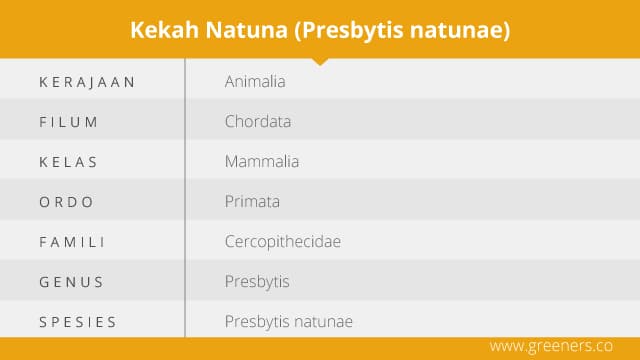 Kekah natuna merupakan mamalia yang termasuk ke dalam ordo Primata dan genus Presbytis. Kekah ialah primata langka yang hanya ada di Pulau Bunguran, Natuna. Dikutip dari berbagai sumber ilmiah, secara umum genus Presbytis merupakan monyet berukuran sedang sampai besar dengan bentuk kepala bulat, moncong pendek, tungkai dan lengan panjang. Bagian perutnya menonjol dengan ekor tebal maupun panjang. Ukuran tubuh genus Presbytis berkisar antara 420 hingga 610 milimeter.