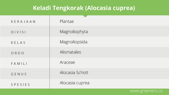 Selain Keladi Merah dan Keladi Tikus, nama Keladi Tengkorak nampaknya kini cukup populer di masyarakat. Tanaman dengan sebutan ilmiah Alocasia cuprea ini diketahui berasal dari Indonesia, serta tumbuh subur di sekitar Pulau Kalimantan.
