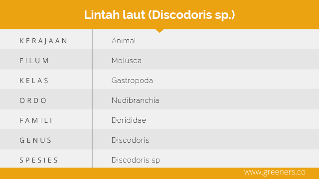 Lintah laut merupakan anggota kelompok filum moluska yang tidak memiliki cangkang. Discodoris sp., atau nama lain lintah laut, banyak ditemukan di kepulauan Filipina, Papua Nugini, Indonesia, Okinawa, Afrika Selatan, dan Australia. Ia termasuk ke dalam ordo Nudibranchia yang memiliki beragam corak dan warna.