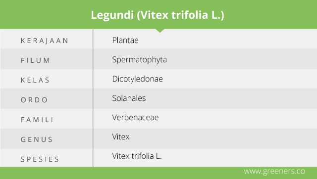 Legundi (Vitex trifolia L.) tumbuh di ketinggian lebih kurang 1.000 meter di atas permukaan laut. Legundi dapat ditemukan di hutan jati, hutan sekunder, semak belukar atau sebagai tanaman pagar (Fitriani, 2004).