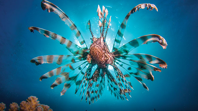 Sebagai informasi, red lionfish tidak tergolong sebagai ikan yang agresif. Fauna ini menggunakan bisanya sebagai bentuk pertahanan diri dari ancaman musuh dan juga mangsanya.