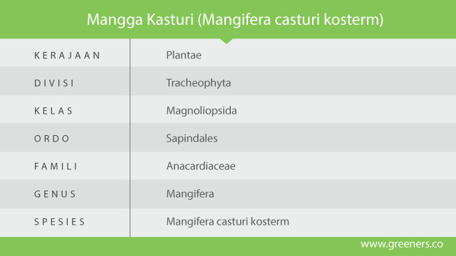Sebagai informasi, Kebun Raya Bogor (KRB) memiliki lima pohon mangga kasturi yang baru berusia sekitar enam tahun. Menurut laman lipi.go.id, berbeda dengan mangga-mangga lain, pohon mangga kasturi baru bisa berbuah setelah usianya sepuluh tahun. Lima pohon itu berasal dari pembibitan satu pohon mangga kasturi yang diperkirakan sudah ada di KRB sejak 1970-an.
