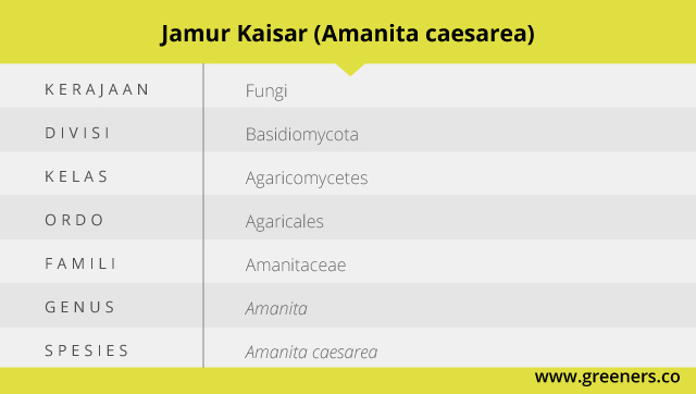 Oleh karena itu, Jamur caesar tak seperti kerabatnya yang umumnya beracun, jamur ini merupakan salah satu spesies Amanita yang dapat kita makan. Berasal dari famili Amanitaceae dan berkerabat dengan jamur Amanita muscaria, Amanita phalloides, dan masih banyak lagi.