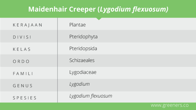 Tumbuhan paku kembang (Lygodium flexuosum) atau Maidenhair Creeper berasal dari famili Lygodiaceae yang hanya terdiri dari satu genus yakni Lygodium yang terdiri dari sekitar 40 spesies.