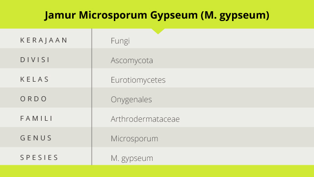 Secara klasifikasi, genus Microsporum sejatinya membawahi 41 spesies fungi. Mereka pakar golongkan dalam ordo Onygenales, sebab memiliki kemampuan mengonsumsi keratin kulit.