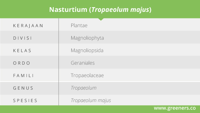 Tanaman nasturtium atau Tropaeolum majus memiliki daun yang khas dan perbungaan yang berwarna cerah serta menarik dipandang. Berasal dari famili Tropaeolaceae, tanaman ini memiliki beberapa nama ilmiah sinonim. Di antaranya Cardamindum majus, Tropaeolum elatum, Tropaeolum hortense, atau Trophaeum majus.