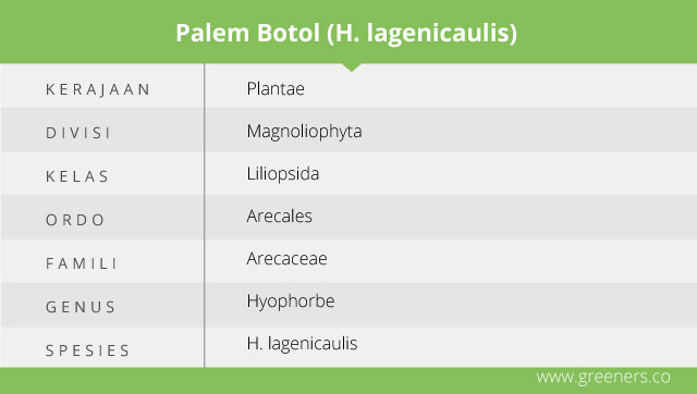 Bottle palm memiliki nama latin Hyophorbe lagenicaulis. Ia ahli kenal juga sebagai Mascarena lagenicaulis, sebuah tanaman eksotis yang berasal dari Round Island, Kepulauan Mauritius.