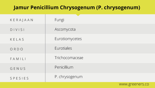 Spesies jamur penicillium tergolong sebagai fungi sejati. Kelompoknya berasal dari divisi Ascomycota, serta tergabung dalam kelas Eurotiomycetes dan ordo kapang Eurotiales.