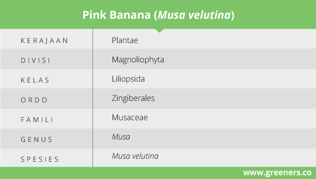 Pernahkan kamu mengonsumsi pisang yang berwarna merah jambu? Musa velutina atau pink banana, pink fruiting banana, velvet pink banana, self-peeling banana, atau hairy banana. Tanaman ini berasal dari famili Musaceae dan berkerabat dengan pisang yang umum kita kenal yakni Musa paradisiaca.
