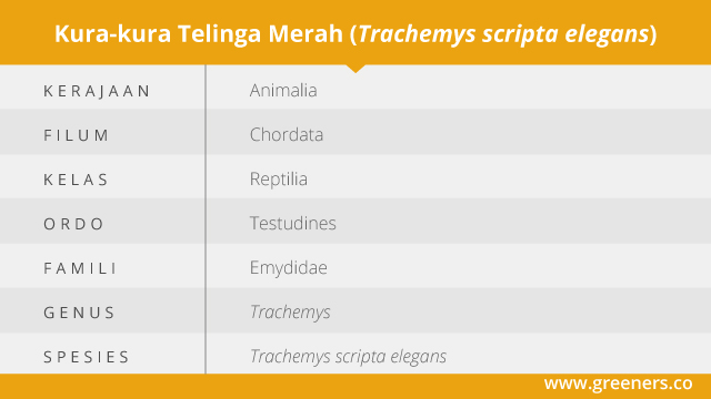 Salah satu reptil yang seringkali kita temukan dan menjadi satwa peliharaan ialah kura-kura. Salah satunya, Red-eared Slider atau kura-kura telinga merah (Trachemys scripta elegans). Kura-kura yang berasal dari famili Emydidae ini merupakan hewan asli Amerika Serikat bagian tenggara.