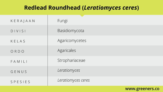 Redlead roundhead (Leratiomyces ceres) merupakan salah satu jamur yang dapat menyebabkan masalah pencernaan jika dikonsumsi. Berasal dari famili Strophariaceae dan berkerabat dengan Agrocybe molesta, Galerina pumila, Pholiota aurivella, dan lainnya.