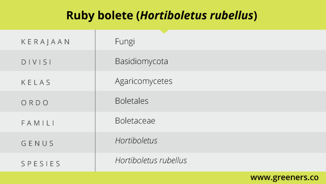 Ahli mikologi Ceko, Julius Vincenz v.K pertama kali memberi nama jamur Boletus rubellus di tahun 1836. Namun, studi molekuler (DNA) belakangan ini mengindikasikan perlu adanya revisi besar-besaran terhadap pengelompokan jamur Boletacea. Sehingga, di tahun 2015, jamur ini pindah ke dalam genus baru menjadi Hortiboletus rubellus.