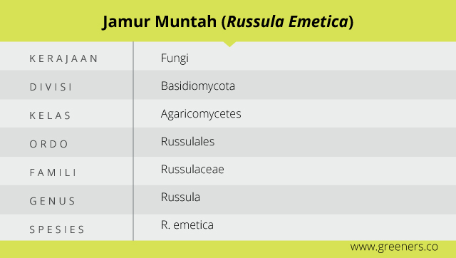 Russula emetica dijuluki sebagai jamur muntah. Mereka berasal dari famili Russulaceae, serta tergolong sebagai satu dari 750 anggota genus Russula yang tersebar di seluruh dunia.