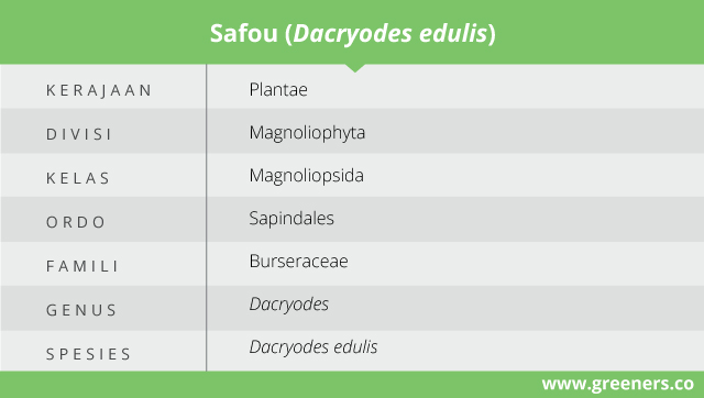Buah safou, eben tree, pir afrika, butterfruit, ube, eleme, atau plum afrika memiliki nama ilmiah Dacryodes edulis. Berasal dari famili Burseraceae, anggota genus Dacryodes ini memiliki banyak manfaat. Nama genus Dacryodes berasal dari bahasa Yunani “dakruon” berarti air mata mengacu pada tetesan getah di batangnya. Nama spesies edulis berarti dapat dimakan.
