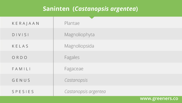 Saninten (Castanopsis argentea) merupakan salah satu indigenous species. Masuk dalam famili Fagaceae, saninten berperan penting dalam ekosistem pegunungan dengan tajuk yang lebar. Permudaan alam pohon ini sulit ditemukan karena populasinya sangat sedikit.