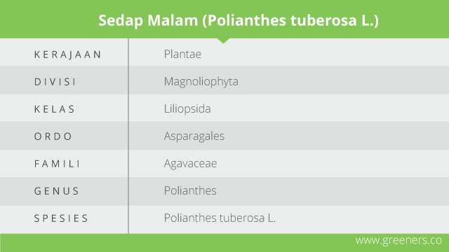 Bunga ini merupakan salah satu jenis bunga yang tumbuh di Indonesia dengan penamaan yang unik. ‘Sedap malam’ begitu sebutan lokal dari flora dengan nama ilmiah Polianthes tuberosa L yang mulanya berasal dari Mexico ini. Tanaman ini dapat tumbuh baik di daerah subtropis maupun tropis termasuk Indonesia.