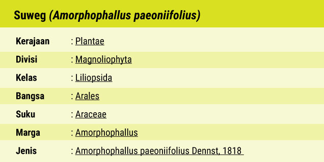 Suweg (Amorphophallus paeoniifolius) merupakan salah satu tanaman langka dari kerabat bunga bangkai raksasa (Amorphophallus titanum) dan iles-iles (Amorphophallus muelleri). Tanaman unik ini masuk ke dalam keluarga Araceae yang memiliki batang semu sehingga menghasilkan umbi batang yang dapat diolah untuk dimakan.
