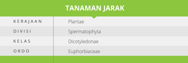 Di Indonesia terdapat berbagai jenis tanaman jarak, antara lain jarak kepyar (Ricinus communis), jarak bali (Jatropha podagrica), jarak ulung (Jatropha gossypifolia L.), dan jarak pagar (Jatropha curcas). Diantara jenis tanaman jarak tersebut yang memiliki potensi sebagai sumber bahan bakar alternatif adalah jarak pagar.