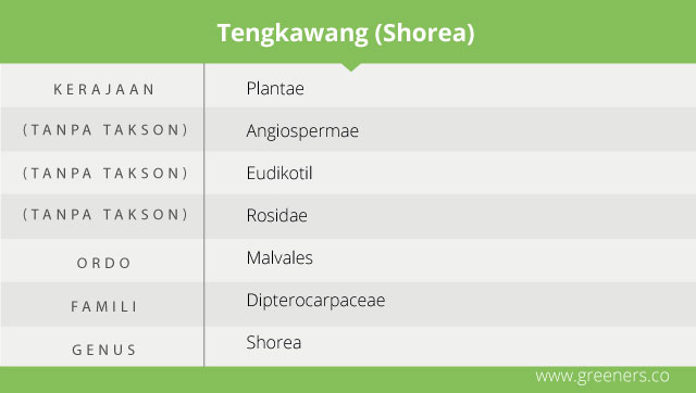 Untuk mengetahui klasifikasi tengkawang, kita harus mengidentifikasi buah tersebut mulai dari pohonnya. Shorea spp. sendiri merupakan satu dari lima anak suku Shoreae yang ada di dunia.
