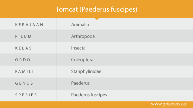 Serangga Tomcat (Paederus fuscipes) memiliki banyak sebutan nama. Di Malaysia dikenal dengan istilah Charlee, semut semai atau semut kayap. Dalam bahasa Inggris dikenal dengan istilah Rove beetle, atau kumbang jelajah atau kumbang pengembara.