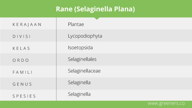 Berbeda dengan paku sejati (Tracheophyta), rane tergabung ke dalam divisi Lycopodiophyta. Keduanya kerap disamaratakan, sebab mempunyai siklus hidup dan organ-organ yang mirip.