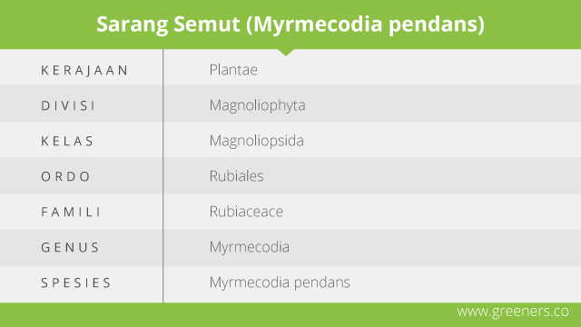 Sarang semut (Myrmecodia pendans) merupakan tumbuhan epifit dari Hydnophytinae (Rubiceae) yang telah lama dikenal dan dimanfaatkan oleh masyarakat sebagai salah satu obat tradisional dan memiliki potensi sebagai antioksidan alami. Sarang semut tumbuh pada pohon inang setinggi 8 m berada di ketinggian 1.100-2.500 m dari permukaan laut.