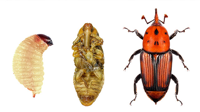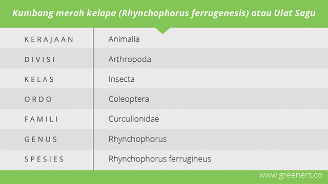 Telur kumbang merah kelapa tersebut kemudian menetaskan larva, larva ini lalu tumbuh menjadi ulat sebelum mencapai bentuk sempurnanya menjadi kumbang dewasa. Ulat yang tumbuh di pohon sagu ini berukuran seperti ibu jari dan berwarna putih.