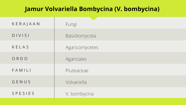 Seperti namanya, jamur ini tergabung dalam genus Volvariella dan ordo Agaricales. Walau begitu, ia sempat beberapa kali berganti genus dari Agaricus, Amanita, sampai Volvariopsis.