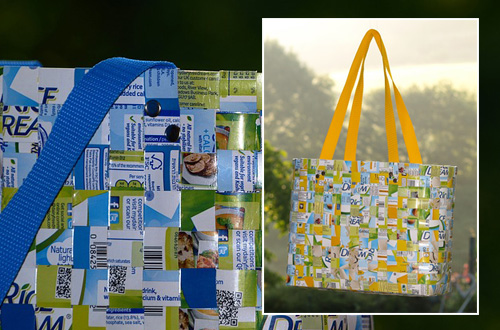 Setelah dibersihkan dan dipilah, kemasan plastik bekas ini dapat dibentuk menjadi berbagai asesori fesyen seperti bros, kalung, tas tangan (clutch), tote bag, dan topi. Berbagai produk kreatif ini dapat ditemui salah satunya di Galeri Indonesia Wow di Gedung Smesco, Jakarta Selatan.